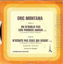 | Face A : | On n’oublie pas son premier amour (Eric D’Antuono - Hubert Ithier / Eric D’Antuono) - 2’56 |