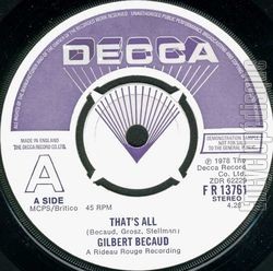 | Face A : | That’s all "Les Caraïbes" (G. Becaud - Maurice Stellman) |
