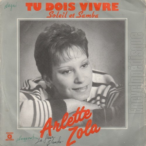 Tu dois vivre | Arlette ZOLA | 1988 | Promo Record | PM 00188 | 45 tours / 17cm |