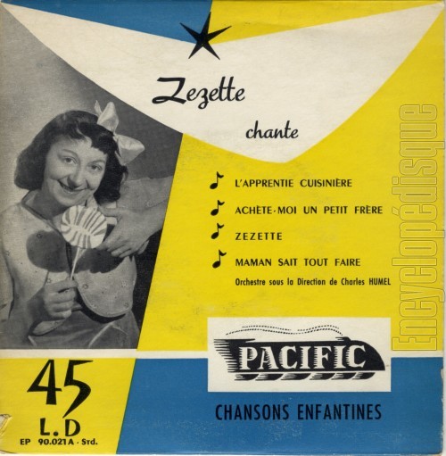 6 Chansons enfantines "L'apprentie cuisinière" Chansons enfantines "L'apprentie cuisinière" ZÉZETTE 1955 Pacific EP 90.021 45 tours / 17cm