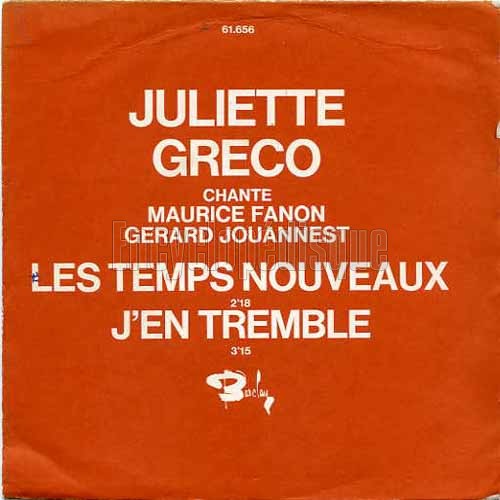 34 Les temps nouveaux Les temps nouveaux Juliette GRÉCO 1972 Barclay 61.656 45 tours / 17cm